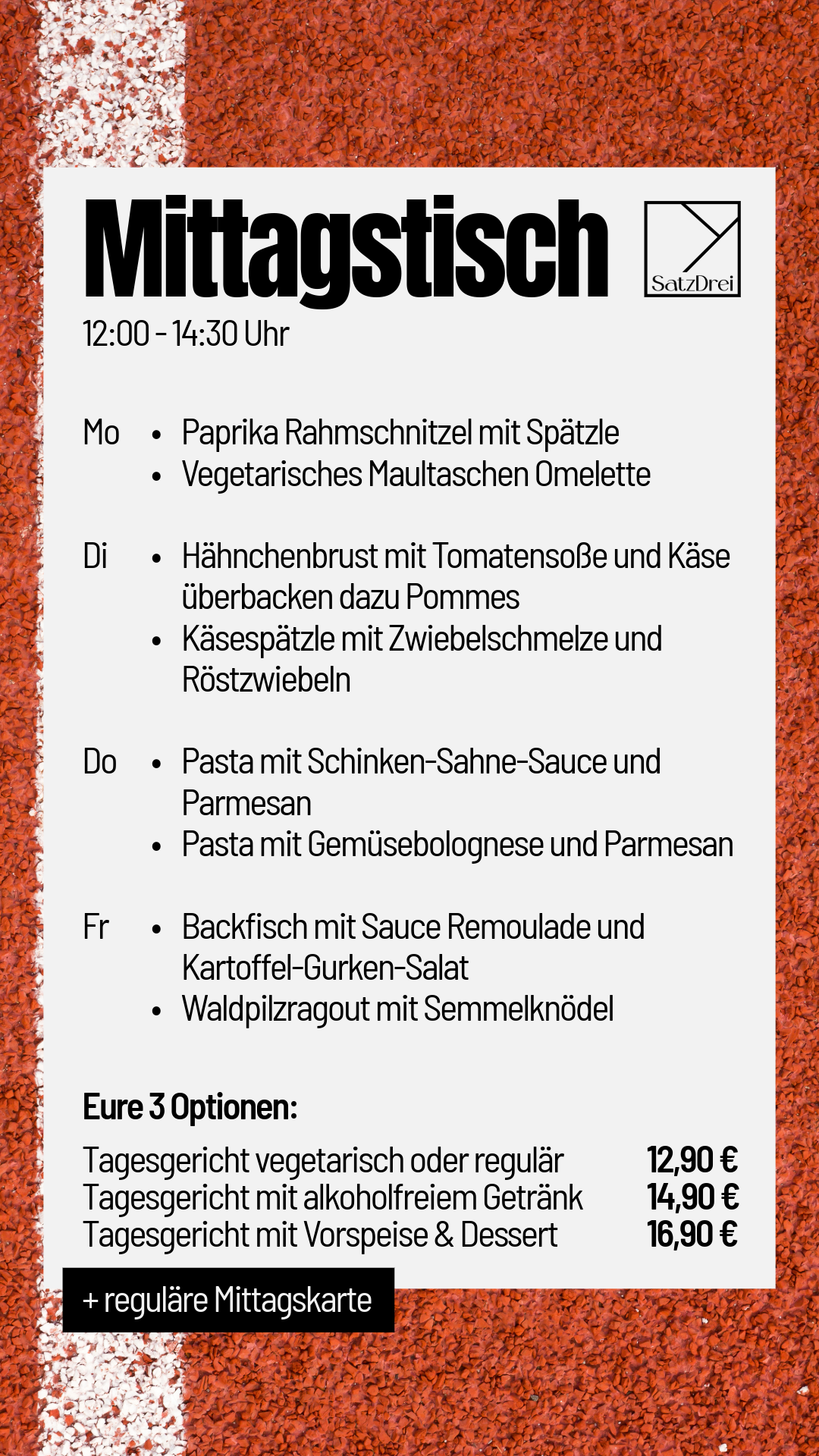 Tagesgericht vegetarisch oder regulär für 12,90 €
